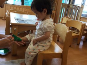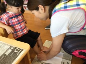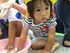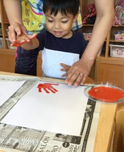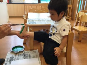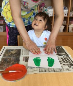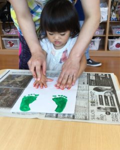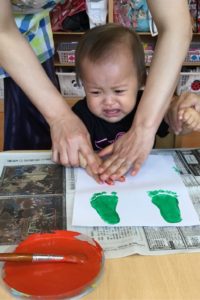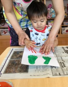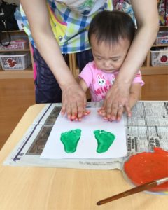 ペッタンした手型、足型は何になるのか楽しみだね😉
