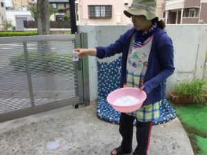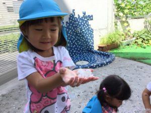 今日は片栗粉に魔法のお水をいれると、、、