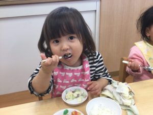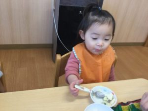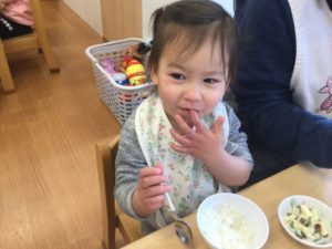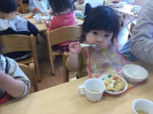 お散歩から帰ったら、美味しいお給食みんなでモグモグ😋