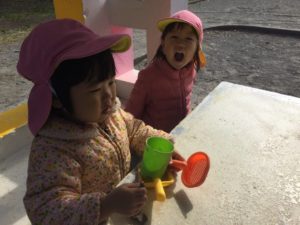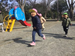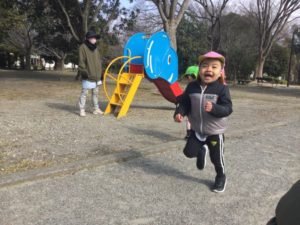 お友だちとさっそくかけっこ、ヨーイドン❣️