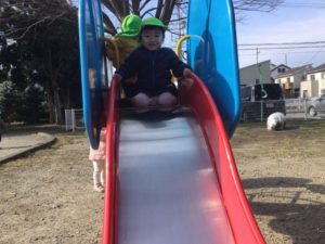 大好きゾウさん滑り台をシュルルル〜😆😆😆