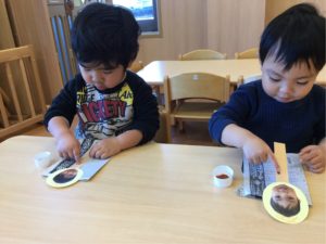 次は折り紙をビリビリやぶってのりでペッタンしよう❣️