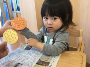 最初はつくしの模様をペッタン❣️