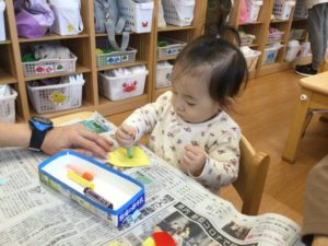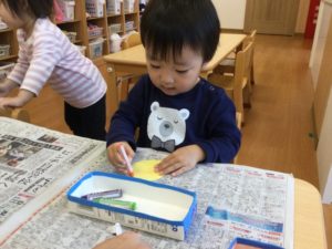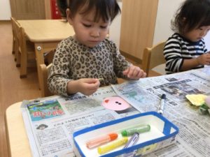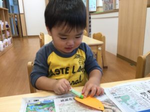 今日はみのむしのお顔と葉っぱに模様を描こう‼️