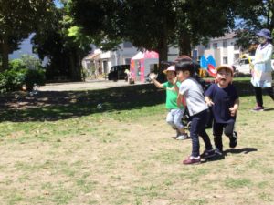 公園の広場に到着〜〜😆 シャボン玉がフワフワ、まてまて〜〜‼️