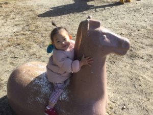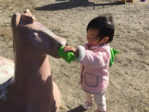 お馬さんの背中に乗ってニッコニコ💕😆😆💕