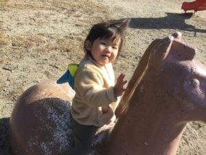お馬さんの背中に乗ってニッコニコ💕😆😆💕