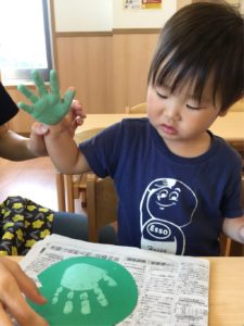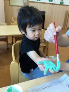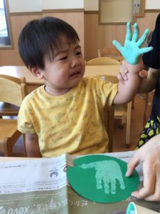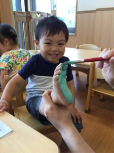 今日はかわいいおててと足に絵の具をつけてペッタンしよう😃