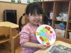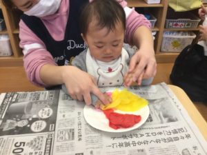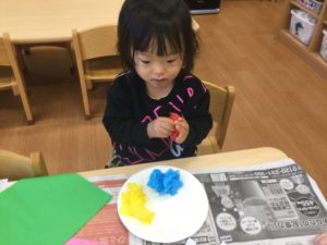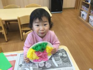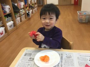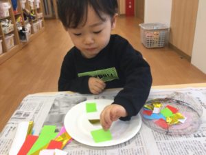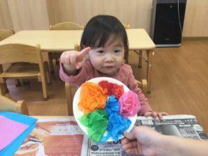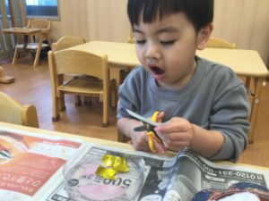 大きいお友だちはハサミ✂️で折り紙を切ろう😄