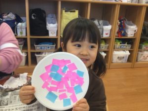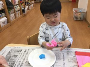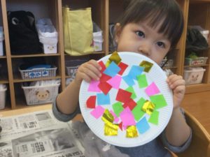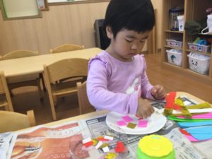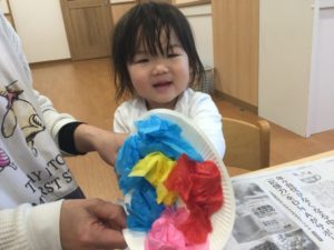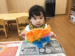 大きいお友だちはハサミ✂️で折り紙を切ろう😄