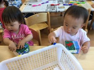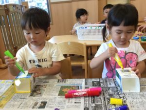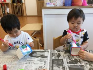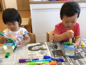 はじめにペンで牛乳パックに模様を描こう😄