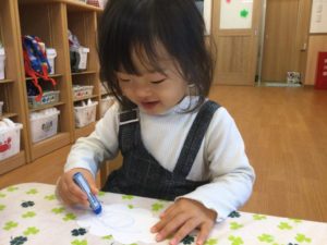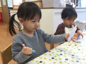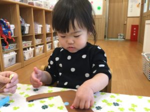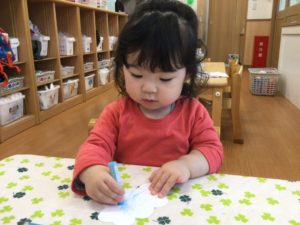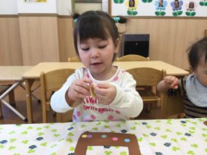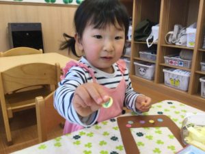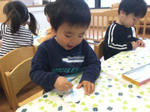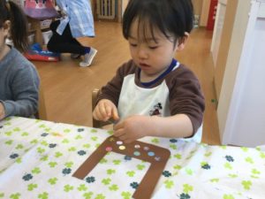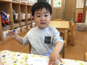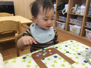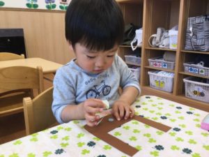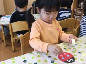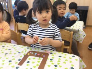 今日は楽しい製作をしよう😃 最初は気球にシールを貼ろう❣️