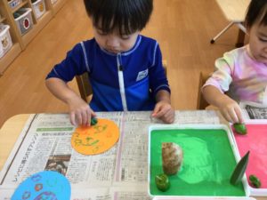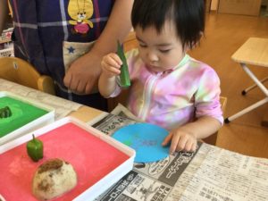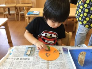 今日は野菜スタンプをペッタンして花火をつくろう💖😊💖