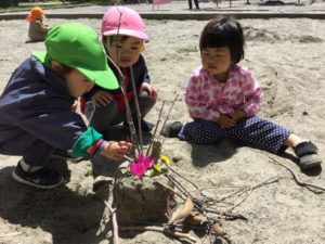お友だちとおそろいでタンポポ飾ったよ🌼