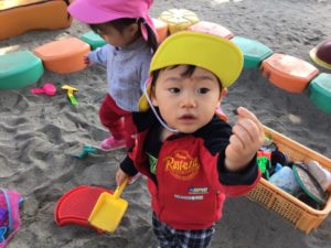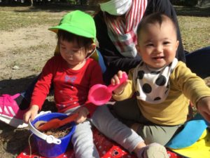 お砂をすくって入れるのに夢中😚