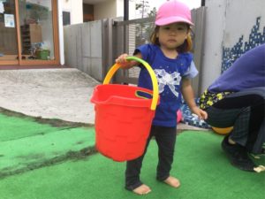 ねえねえ、大きなバケツを持ってどこに行くの😙