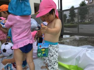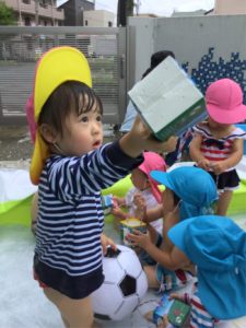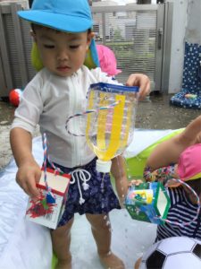 さあ、みんなが作った牛乳パックシャワーで遊ぼう‼️