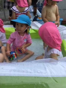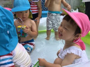 はじめてのプール遊び、お友だちと一緒にお水と仲良しになれて楽しかったね🎶🎶😆😆🎶🎶