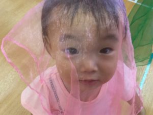 ついつい布を頭に😝