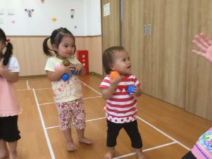 お歌に合わせてボールをお空にポ〜ン😃