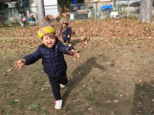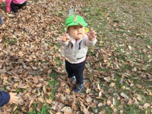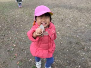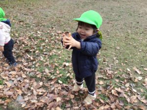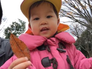 落ち葉を持ってハイポーズ🤗