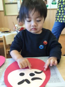 はじめに目とおひげと眉毛をペッタン‼️