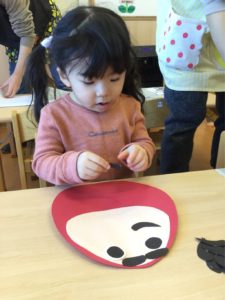 はじめに目とおひげと眉毛をペッタン‼️