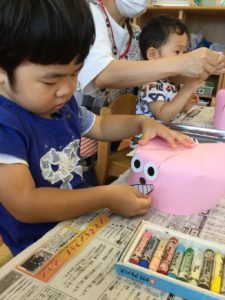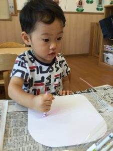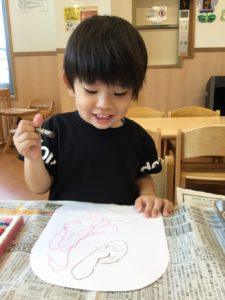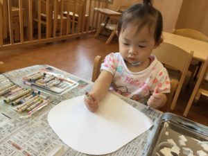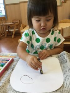 最初はクレヨンでお腹の模様を描こう😄