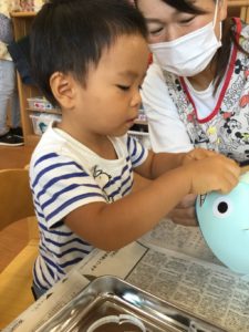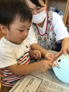 次はお顔に目や口や鼻を貼ろう😊