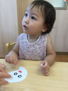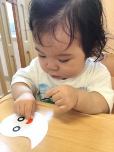 お化けの目と口も貼ろう👻