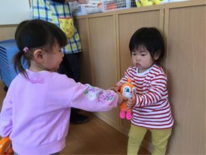 お友だちにお人形を『どーぞ☺️』