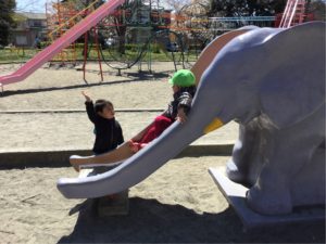 おやおや❓ ゾウさん滑り台に踏み切り😳⁉️