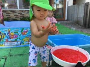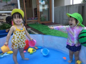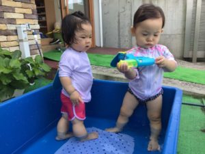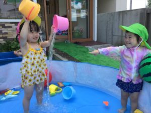 バケツにたくさんお水を入れたら、ジャバ〜〜😆😆😆