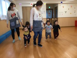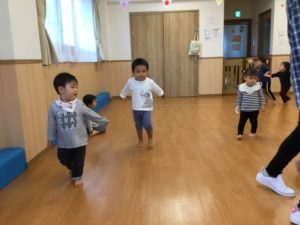 最初はみんなでピアノの音に合わせて体を動かそう😆