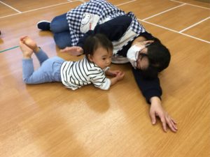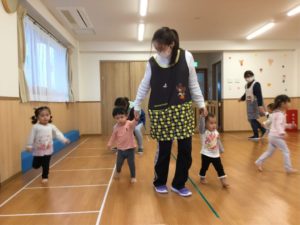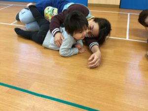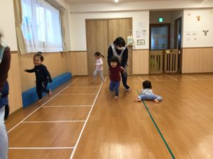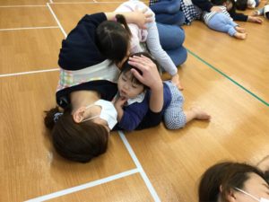 ホールでは『むっくりクマさん🐻』で元気いっぱい動いて遊んだよ😉