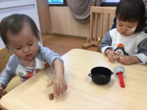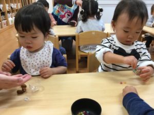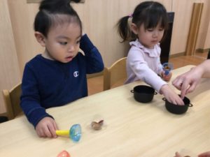 マラカスの中にどんぐりやビーズをいれよう‼️