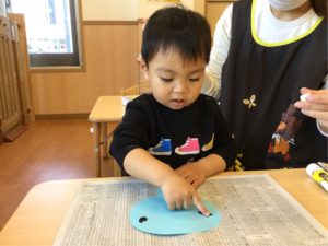 ゾウさん🐘のおめめをペッタン❣️