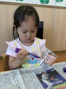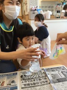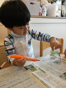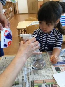 模様を描いたら不思議なお水を吹きかけよう❣️