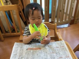 新聞紙に何か面白い記事でも載っていたのかな😊