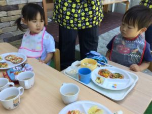 保護者の皆様、エプロンと三角巾のご用意ありがとうございました😊