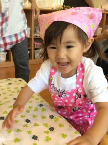 保護者の皆様、エプロンと三角巾のご用意ありがとうございました😊