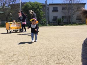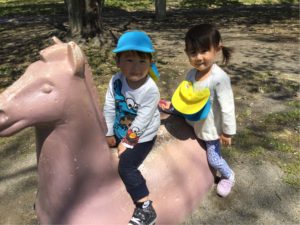 今日はおおかば公園の広場に線路🛤ができたよ😃