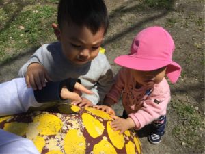 先生のおててに小さいてんとう虫さん🐞がとまったよ😲