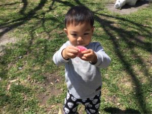 今日はおおかば公園の広場に線路🛤ができたよ😃