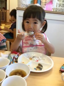 たくさん遊んだ後は、美味しいお給食〜〜😋😋😋
