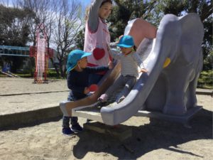 おやおや❓ ゾウさん滑り台に先生踏み切り出現😲
