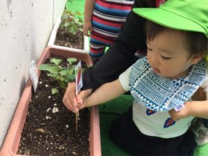 今日はキッズ菜園のお野菜に名札をつけたよ❣️
