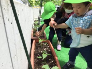 お野菜の苗に『大きくなってね💕』とお話すると喜んでくれるかな😉