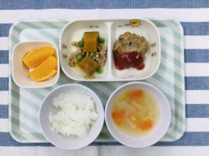 豆腐入りハンバーグ かぼちゃのそぼろ煮