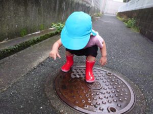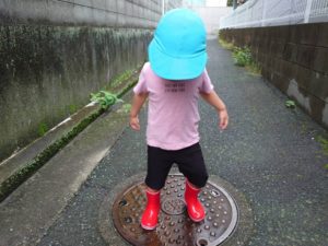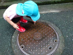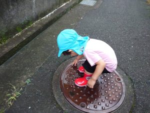 小さな小さな水たまりでしたが水遊びだけでなく、小石を見つけたり穴に指を入れてみたり遊びが広がりました。